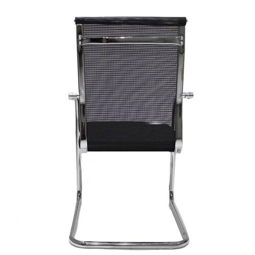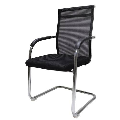 Cadeira Fixa de aproximação S, Base cromada, com braço, encosto em poliuretano perfurado, assento espumado em tecido poliéster na cor preta, alta resistência