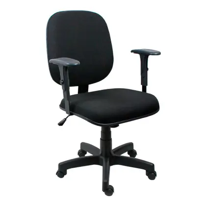 Assento e encosto estofado em espuma injetada Densidade d45,  possuir regulagem de altura do assento, Bordas perfil (PVC+50% CO + 50% PES).  Dimensões mínimas: medidas do assento: largura: 45 cm, profundidade: 48 cm, espessura: 7 cm. Medidas do encosto: largura: 46 cm, altura: 49 cm e espessura: 6 cm. Altura do piso ao assento: 42 cm mínimo e 51,5 cm máximo. Altura total: 96 cm mínimo e 108m.  máximo. Altura do braço ao chão: 66 cm mínimo e 78 cm máximo. Medidas aproximadas da cadeira montada: 60 cm de largura x 60 cm de profundidade.