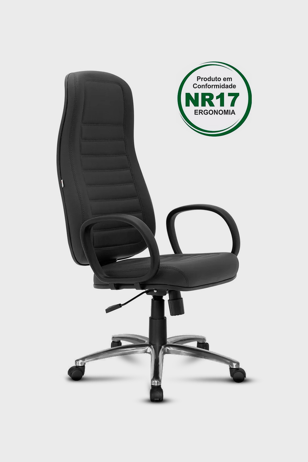 CADEIRA PRESIDENTE MD EXTRA GIRATÓRIA ERGONOMICA ,POLTRONA ESPALDAR ALTO SUPER ANATÔMICO, EM MADEIRA DE 14MM; CONFECCIONADA EM ESPUMA INJETADA DE 70MM; ACABAMENTO EM PVC; REGULAGEM DE ALTURA A GÁS; BASE GIRATÓRIA 5 HASTES RODIZIO DUPLO ; ALTURA DO ENCOSTO: 77CM; ALTURA DA CADEIRA: 120CM; LARGURA DA CADEIRA: 51CM, PROFUNDIDADE CM 20, PESO SUPORTADO 150KG, CARACTERÍSTICAS DO ASSENTO; ASSENTO DE ESPUMA INJETADA ANATÔMICA COM 45MM, CARACTERÍSTICAS DO ENCOSTO; ENCOSTO COM ESPALDAR ALTO COM APOIO LONBAR E CERVICAL QUE PROPORCIONA UM MELHOR CONFORTO PRA TRABALHO.