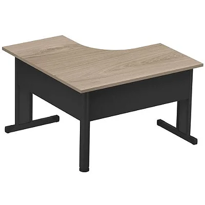 MESA – TIPO: ANGULAR; FORMATO EM L TAMPO: CONFECCIONADO COM CHAPAS DE MADEIRA DE MÉDIA DENSIDADE (MDP – contorno do tampo é encabeçado com fita de poliestireno com 2,5 mm de espessura mínima, coladas arredondadas acesso de passagens de fios no tampo confeccionado por meio de três passa-cabos redondos em pvc rígido com ø 60 mm ; estruturas: laterais metálicas constituídas por chapas metálicas conformadas, cuja composição se divide em pata, coluna, e suporte do tampo; dados complementares: todas as partes metálicas submetidas a um pré-tratamento por fosfatização a base de zinco e pintura eletrostática em tinta epóxi em pó texturizada, polimerizada em estufa a 200º c;